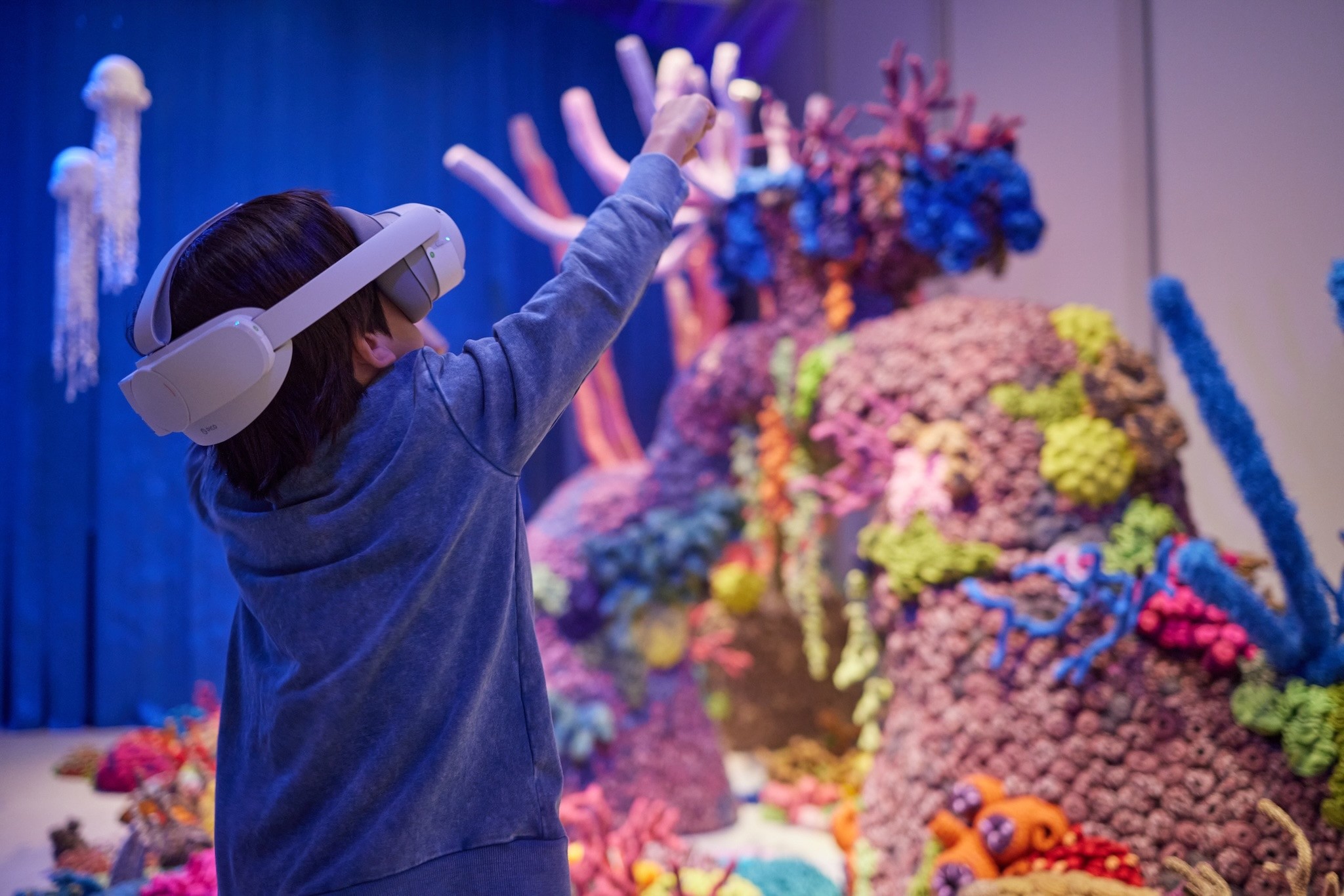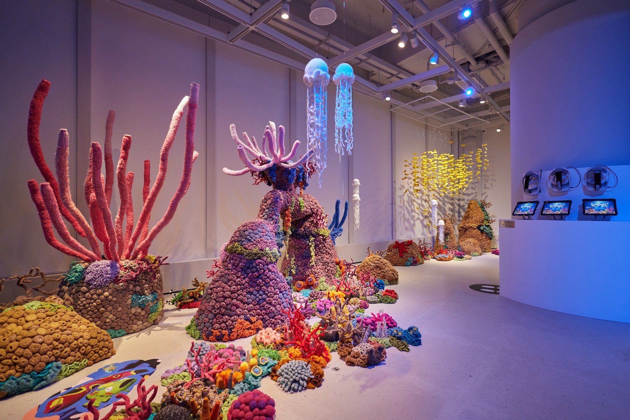 Drawing inspiration from the concept of SYMPHILIA, this immersive installation fuses Mixed Reality and the art of Crochet, a collaborative endeavor that unites Indonesian crochet artist Mulyana's 'Ocean Wonderland' with the innovative contributions of French-Portuguese new media artist Frederic Brussier and the Hong Kong-based digital art studio, The Collective.