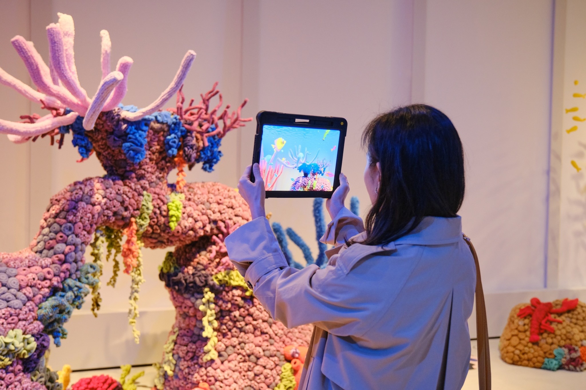 In this visionary creation, delicate crochet sculptures breathe life into vibrant imaginary corals, while Mixed Reality infuses enchanting movement and vitality into the surrounding aquatic ecosystem. This fusion of tactile artistry and digital marvels offers viewers an engaging experience, inviting exploration of the intriguing and unexpected mutualism of this magical land.