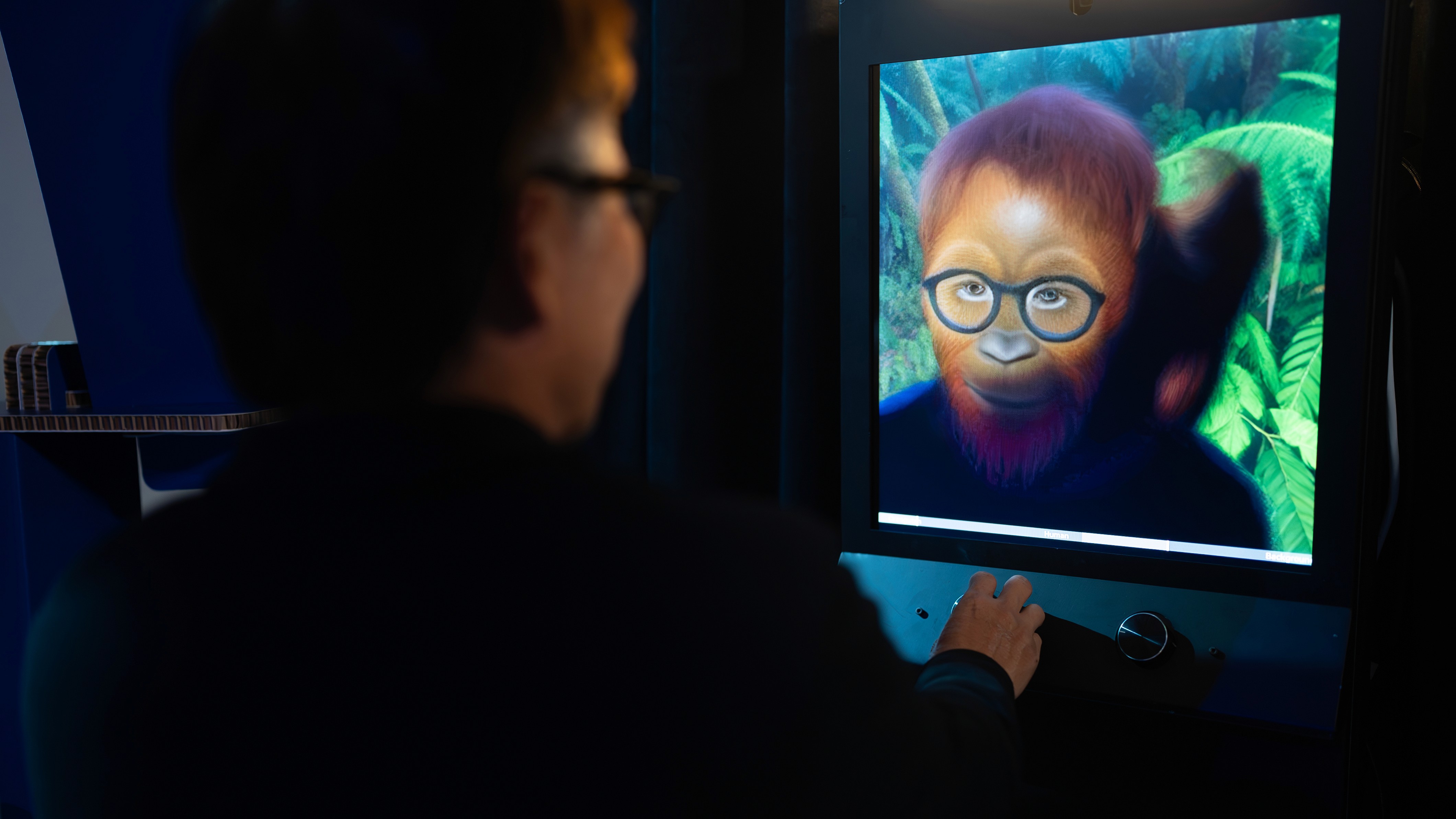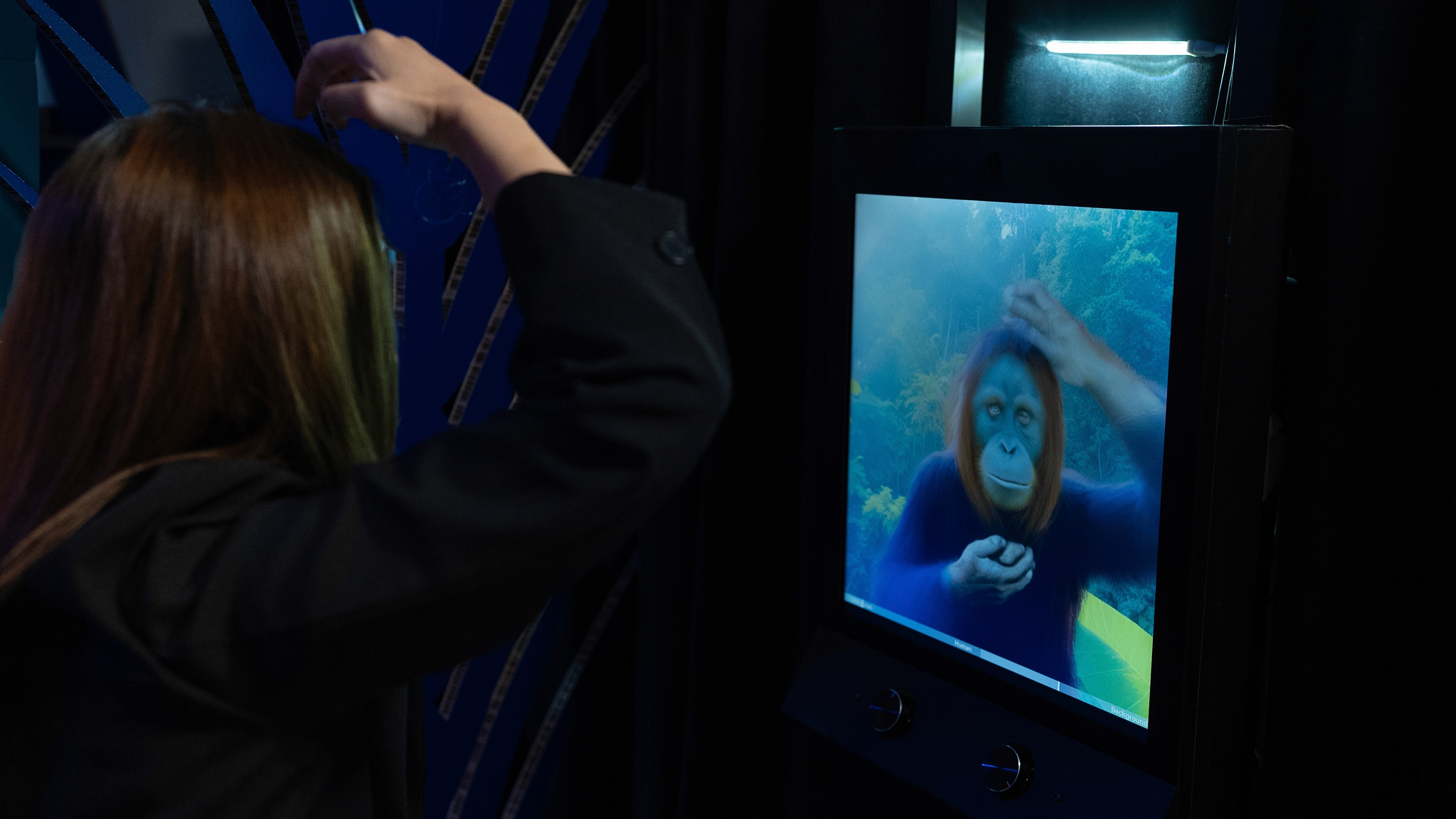 This artwork converts visitors into orangutans, as a simple symbolic transformation to encourage visitors to feel in others’ shoes. We all have emotions, we all want to survive, we all want to be loved. Open your eyes and see that every animal is someone.