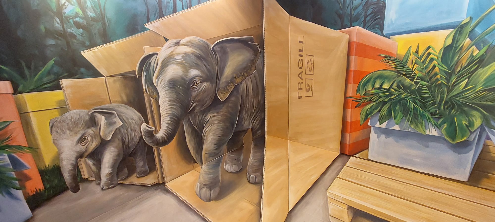Leon captures Sumatra’s biodiversity as a series of precious “gifts,” with flora and fauna symbolizing nature’s bounty. Through his masterful use of perspective, Leon immerses viewers in this surreal scene, allowing them to feel part of the lush landscape, alongside the gentle presence of these heartwarming elephants, the mother and her calf.