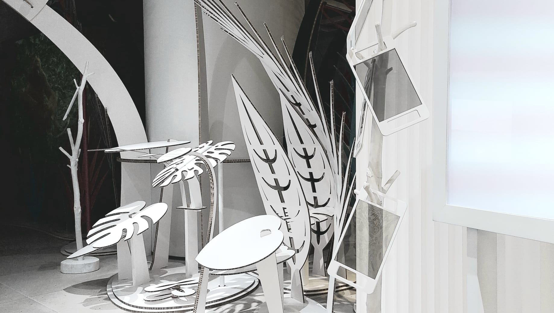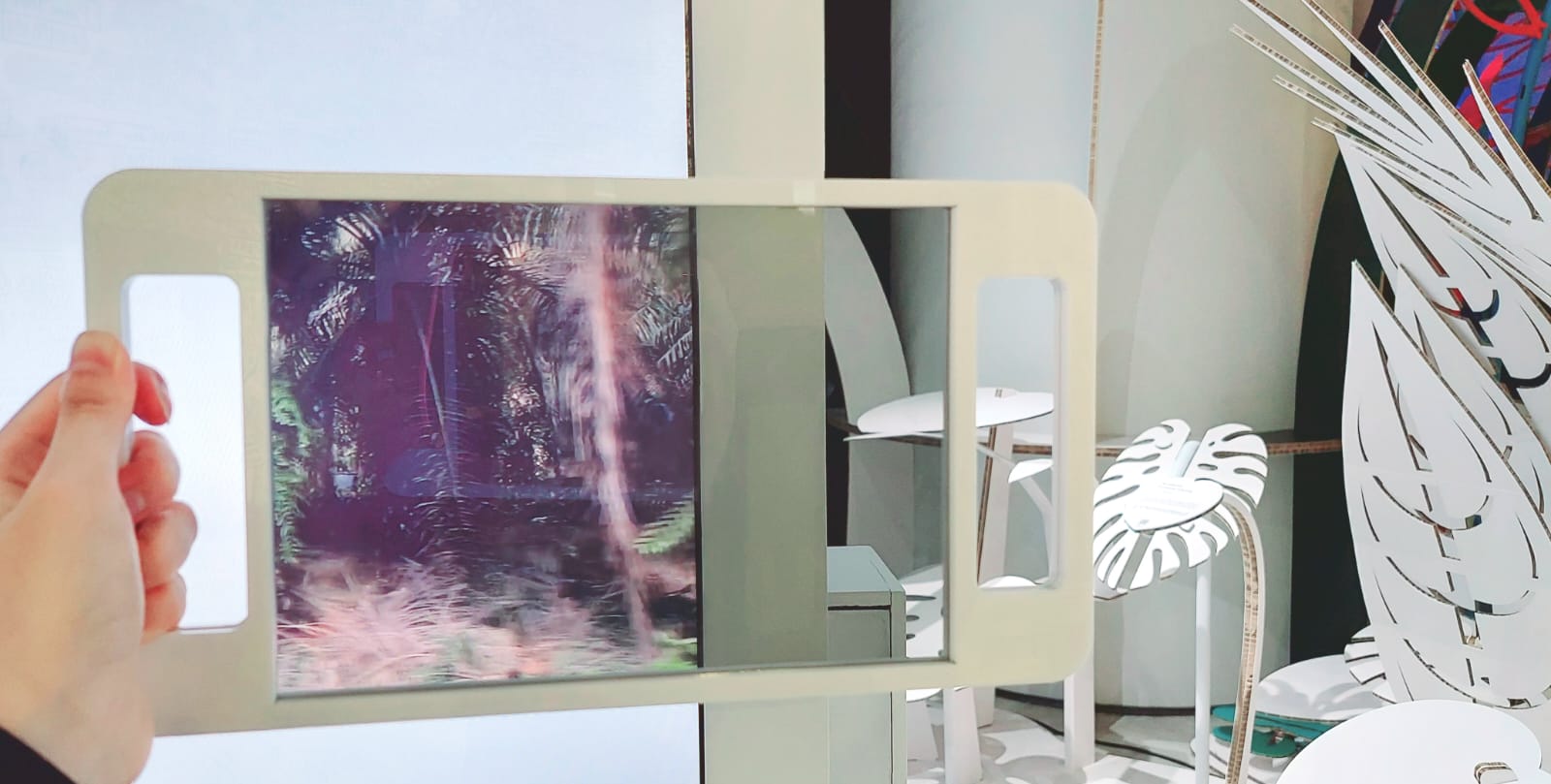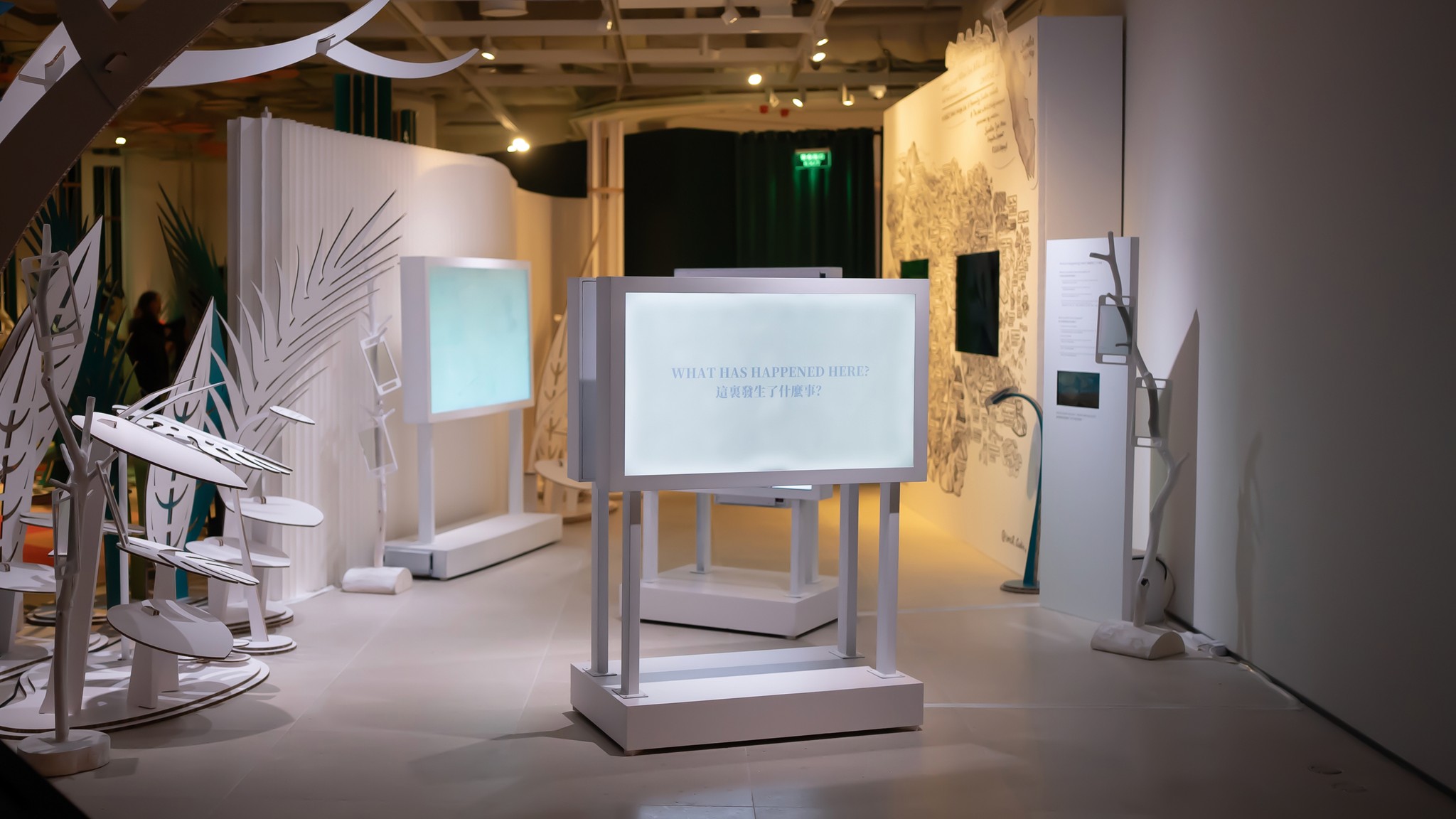In this all-white, empty, and silent space, visitors are invited to use the provided lenses to explore and uncover what has happened here.