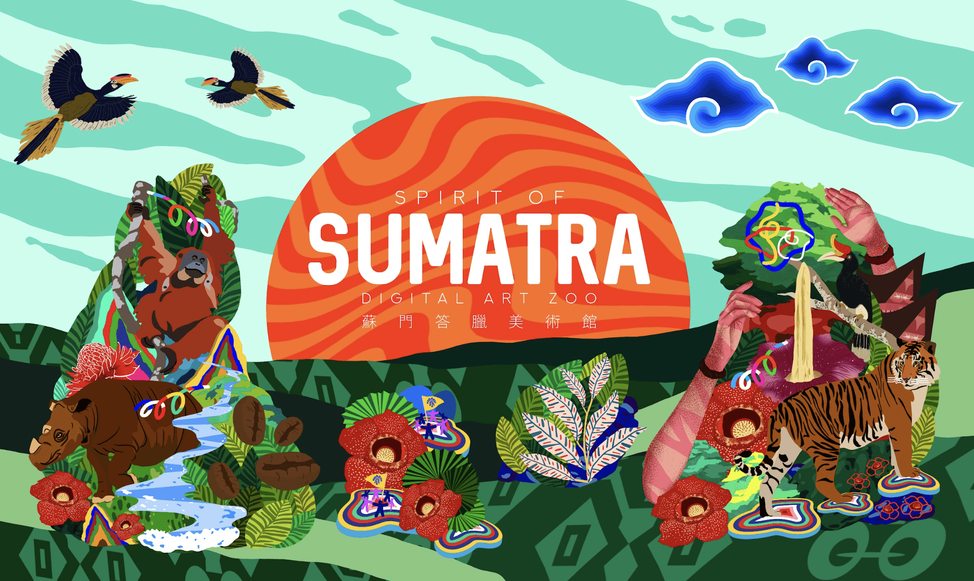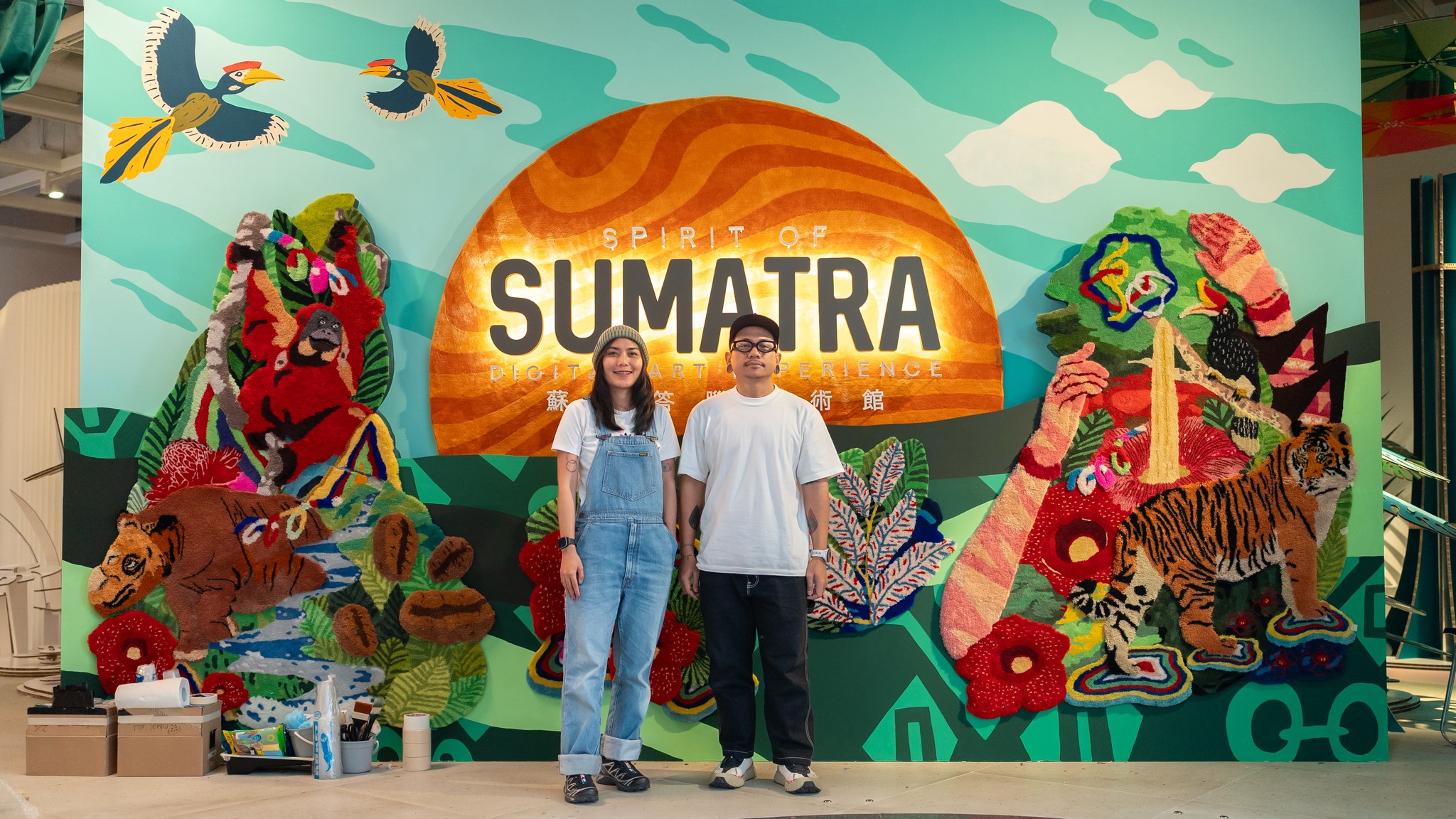 The beauty of Indonesia’s nature, particularly the island of Sumatra, serves as the main inspiration for this artwork. We aim to reimagine Sumatra through a two-dimensional installation, blending murals and pop-up carpets to adapt and reflect the diversity of nature.