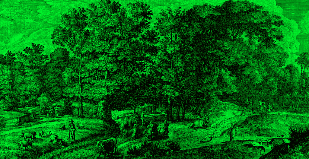 When illuminated in green, the city gives way to open fields and forests. This rural scene stands in sharp contrast to the dense urban environment, offering a pause—an invitation to imagine space, growth, and alternative rhythms of living.
